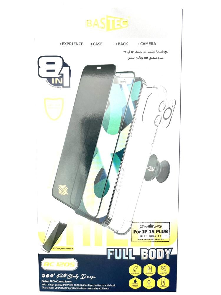 مجموعة الحماية الكاملة 8 في 1 ايفون 15 بلس من BasTec